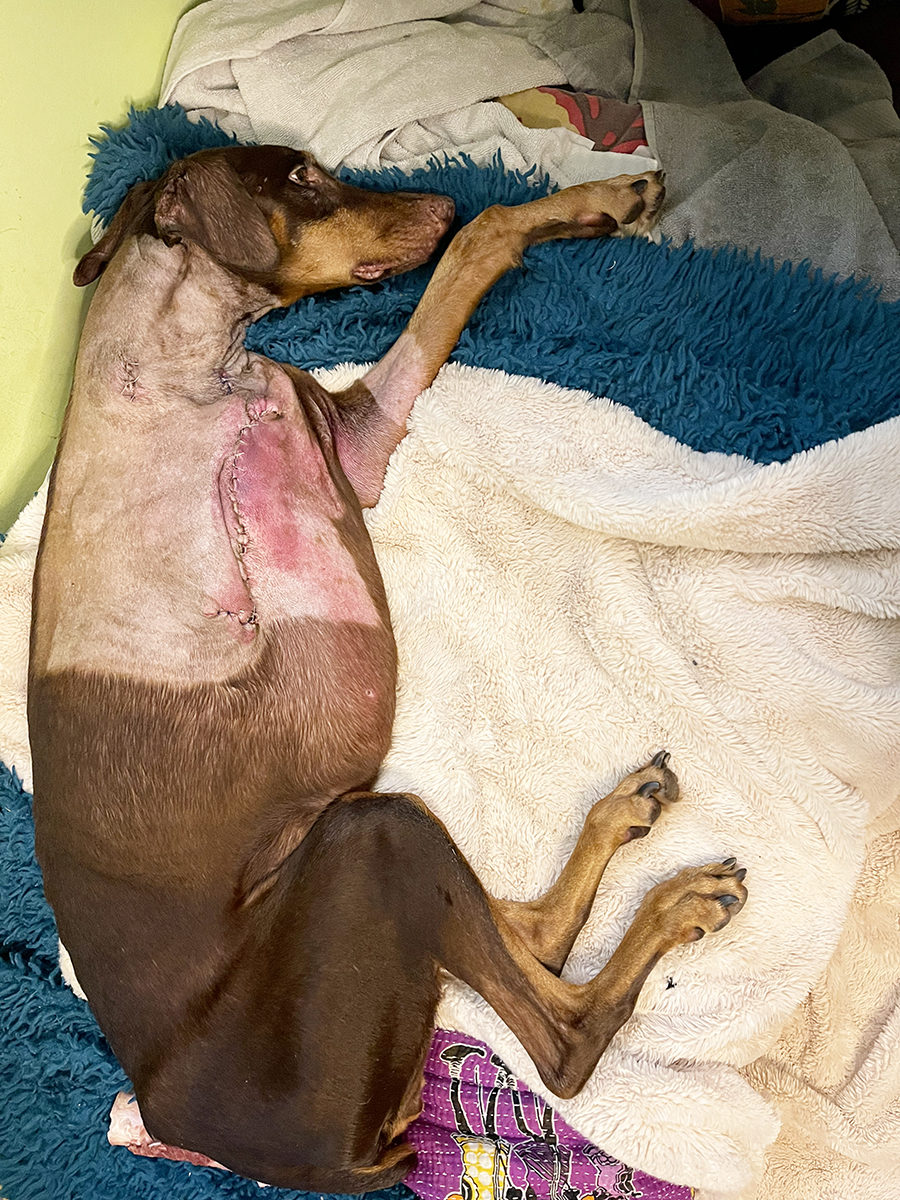 In my previous update, one year post diagnosis, Nina was not a good candidate for amputation. But this year however, circumstances had changed. By March 17th, 2022, (22 months post osteosarcoma diagnosis), we knew it was time for Nina’s leg to be amputated.