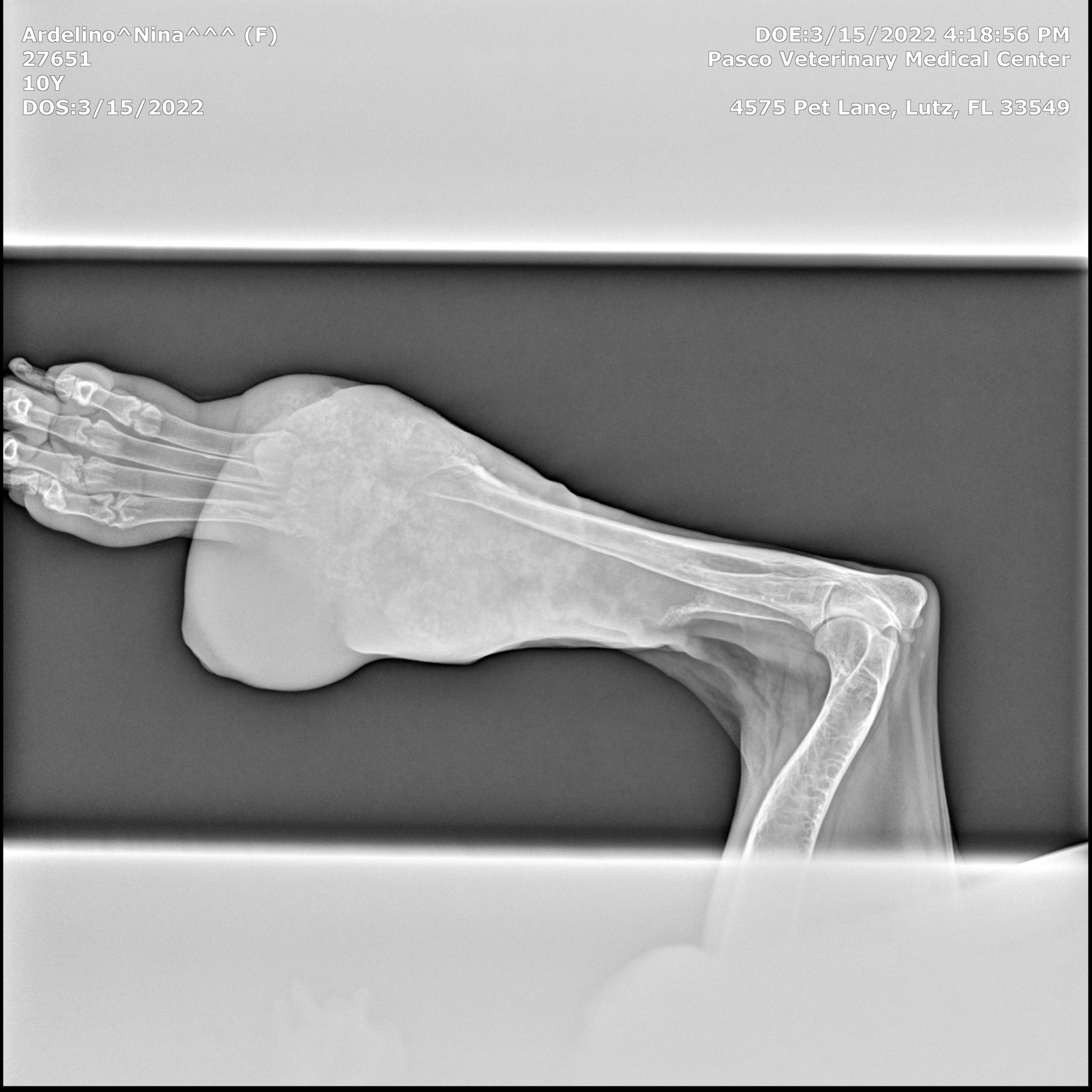 In addition, we sent the amputated tumor leg for Histology, which proved that Nina indeed had Osteosarcoma. (side note: I spent the extra $500 to do this, so that I could prove to all of those who questioned whether she actually had canine osteosarcoma or something else.)